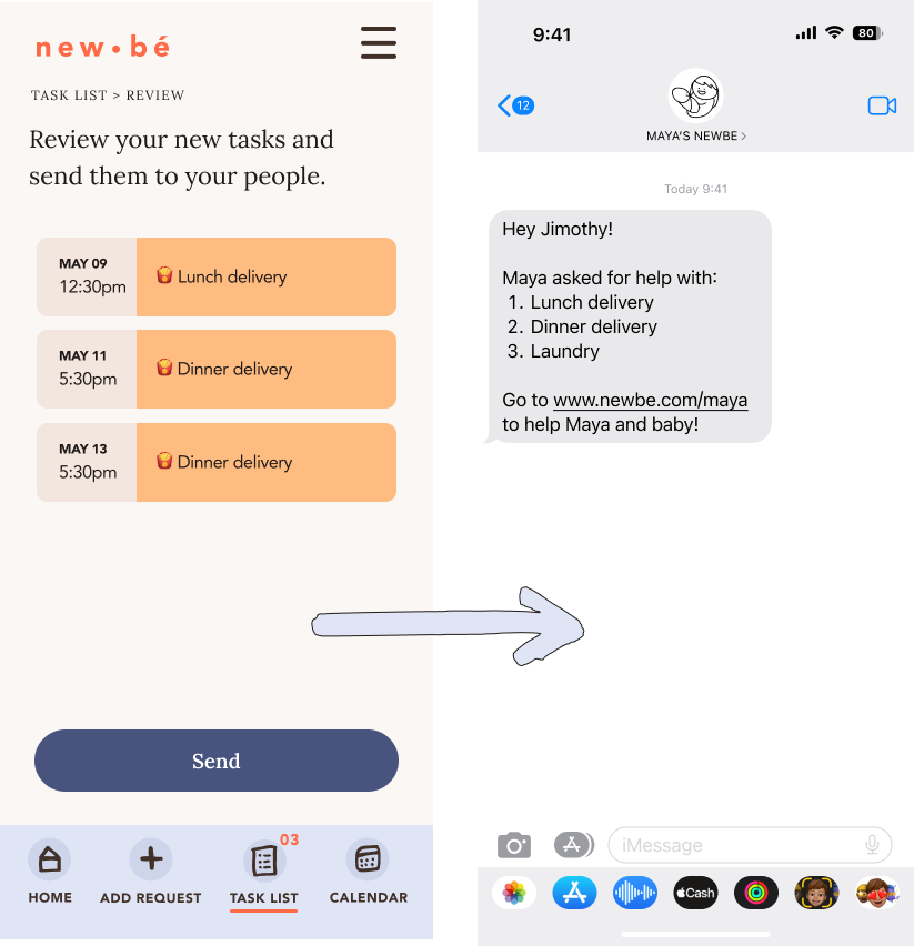 With a quick text and a link to all the important details, she can get back to her more pressing responsibilities (napping, snuggling, and watching baby yawn) knowing that reinforcements are on the way.