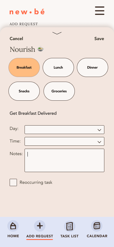 🍲 Nourish: ask for someone to deliver a meal